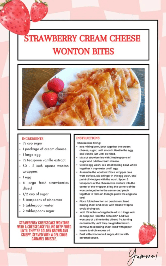 These Strawberry Cream Cheese Wonton Bites combine the creamy richness of cheesecake with the light, golden crunch of fried wontons.
